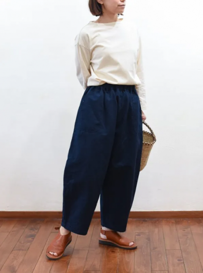 seasew./コットンリネンカルゼ後切替コクーンパンツ ネイビーM