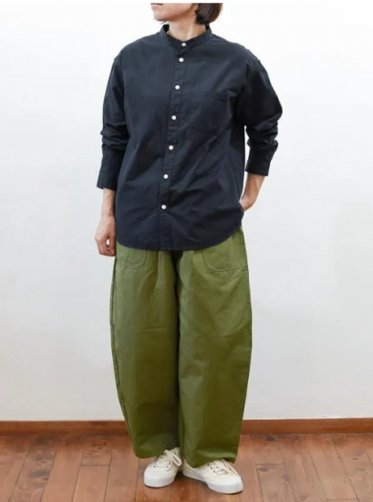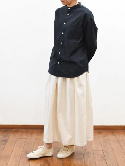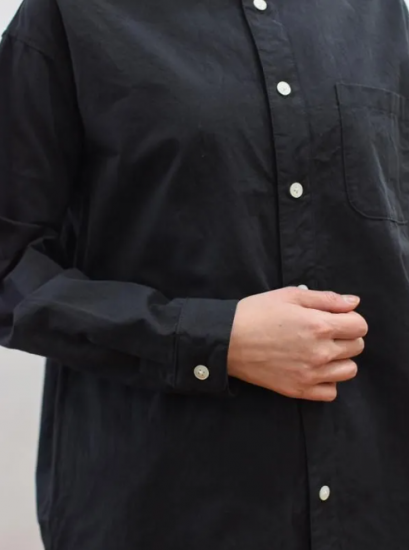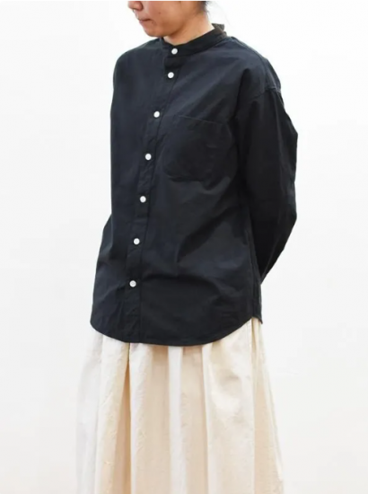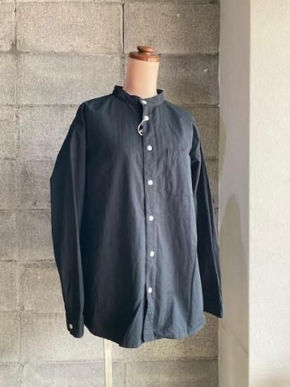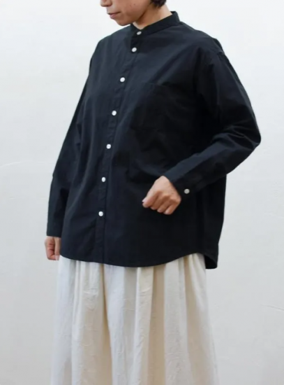 seasew./高密度ツイルスタンドカラードロップショルダーシャツ ブラックM/S
