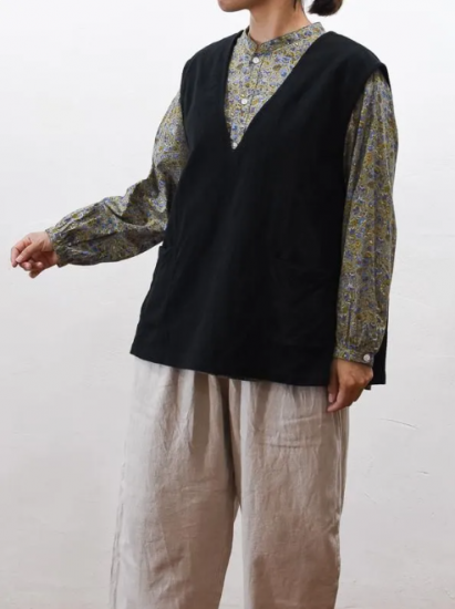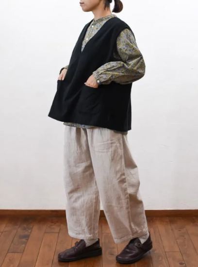 ゆったりとした身幅でゆるりとした雰囲気のベスト。