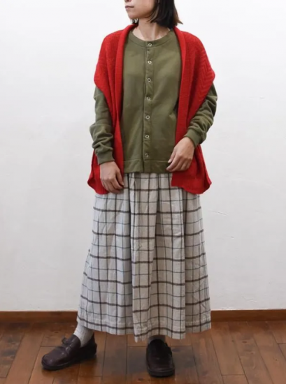 ボトムスを選ばない丈感はパンツ、スカートどちらともバランスよく着こなしていただけます。