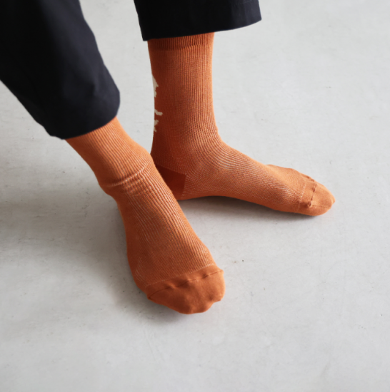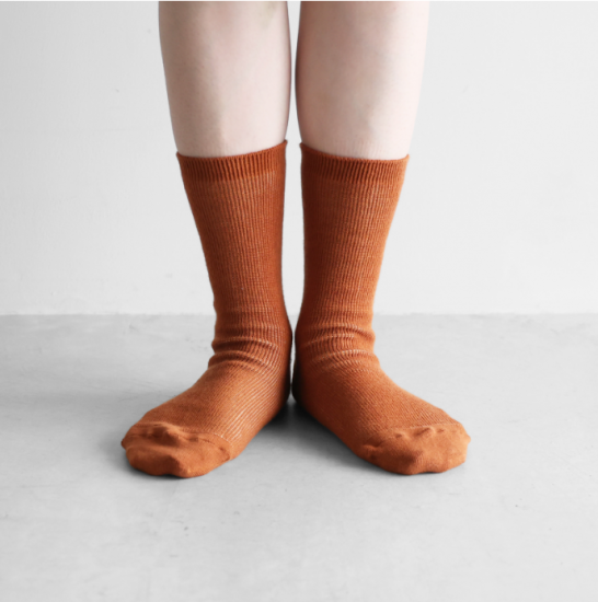 “日々の暮らしに馴染む、上質な日常着”をコンセプトに、世界的にも希少な旧式の「シャトル織機」で20〜30倍もの時間をかけて生み出す最高品質の「遠州織物」を使用したシンプルな衣服を展開しているHUIS.(ハウス)のオリジナルくつした。