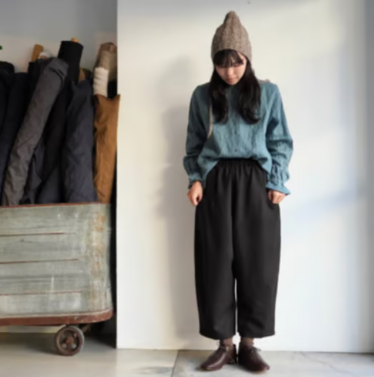 ほどよいボリューム感と足首が少し見えるくらいの着丈、ゆったりとした履き心地でリピート率の高いコッペパンツ。