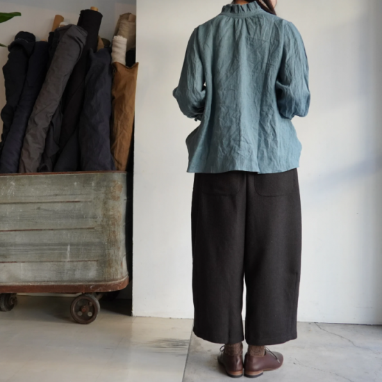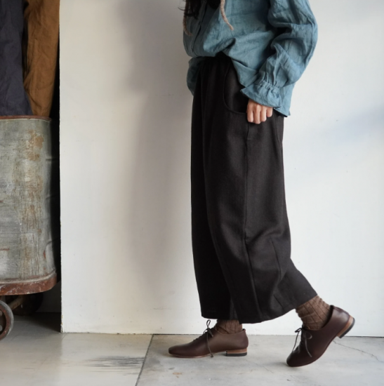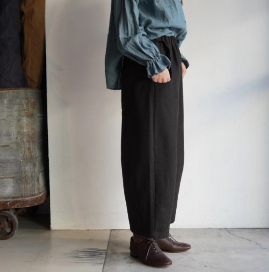 生地屋のこだわりで選んだ質のよい生地で、ほかにはないひとつだけのモノを仕立てている鹿児島のnuuno.が作る定番パンツ。