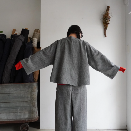 生地屋のこだわりで選んだ質のいいリネンを中心に、ほかにはないひとつだけのモノを仕立てている鹿児島nuuno.の新作ジャケット。