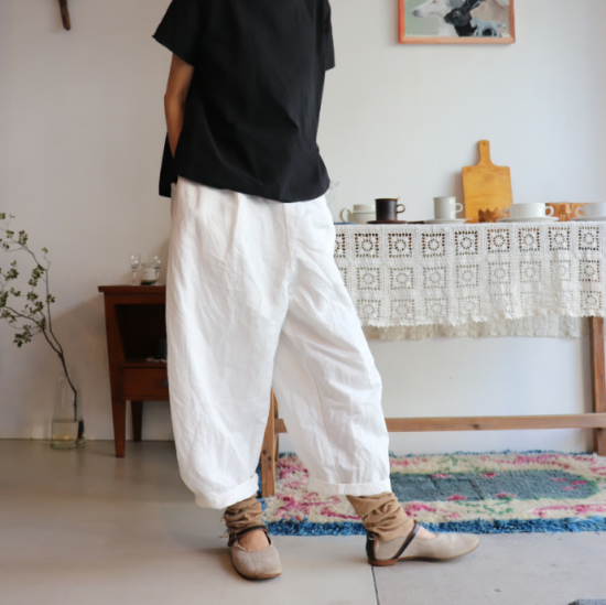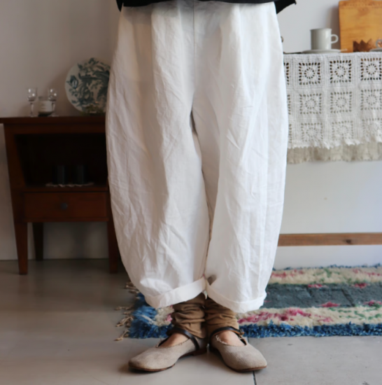 生地屋のこだわりで選んだ質のいいリネンを中心に、ほかにはないひとつだけのモノを仕立てている鹿児島nuuno.のレギンス。