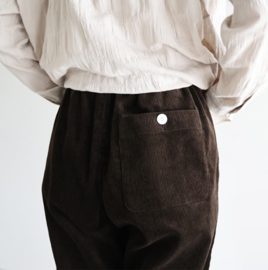 【11/22まで期間限定販売】HUIS./遠州織物綿麻コーデュロイイージーワークパンツ(細畝・カーキブラウン)【ユニセックス】507