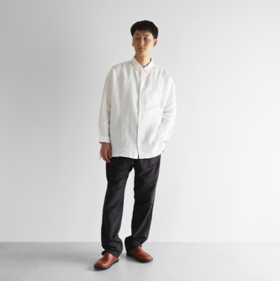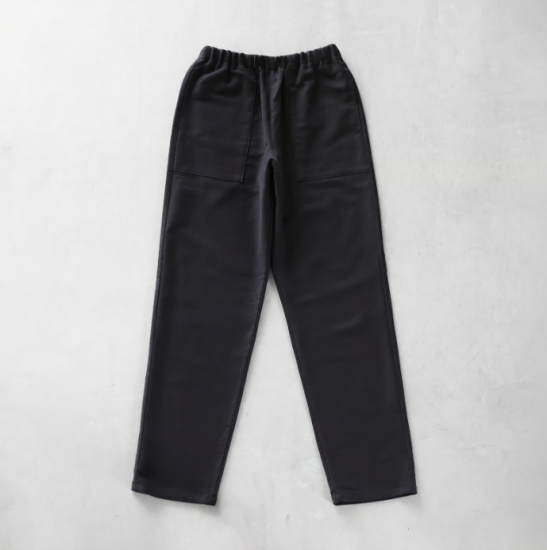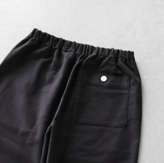 “日々の暮らしに馴染む、上質な日常着”をコンセプトに、世界的にも希少な旧式の「シャトル織機」で20〜30倍もの時間をかけて生み出す最高品質の「遠州織物」を使用したシンプルな衣服を展開しているHUIS.(ハウス)のシンプルなワークパンツのロング丈バージョン。