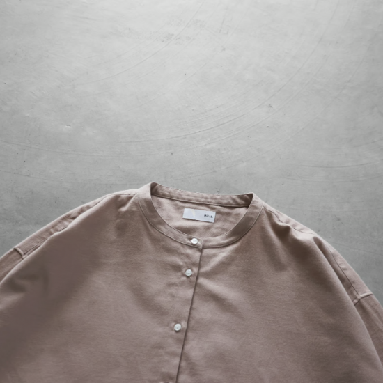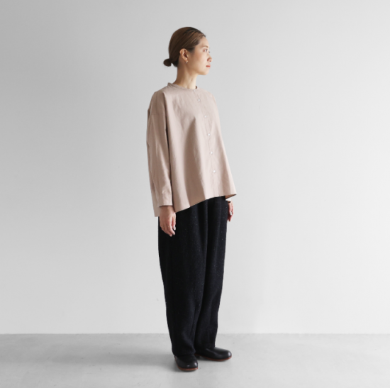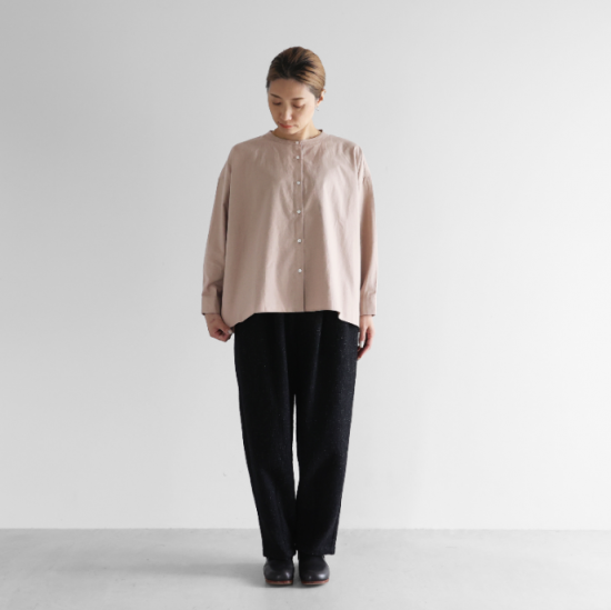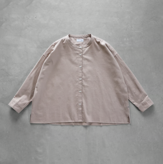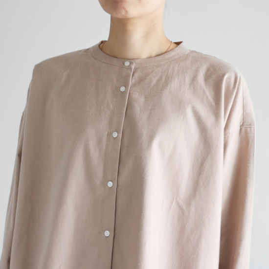 【11/22まで期間限定販売】HUIS./遠州織物オーガニックコットン起毛ビエラバンドカラーワイドブラウス(ピンクベージュ)U104