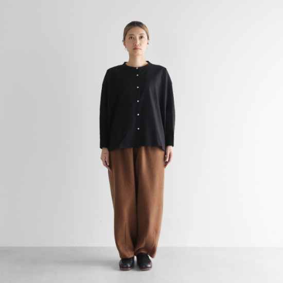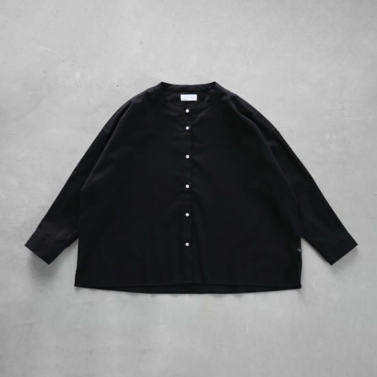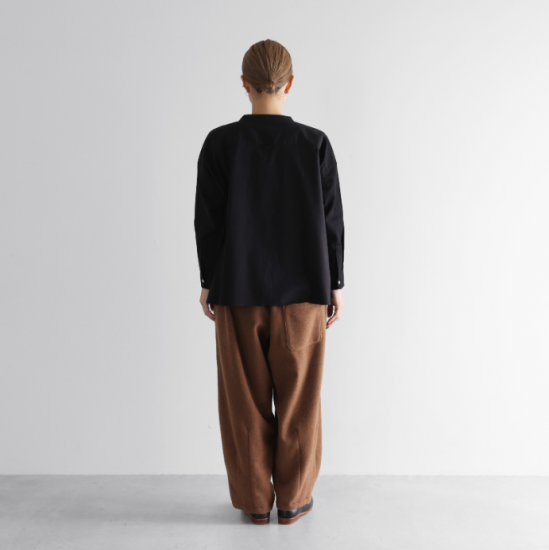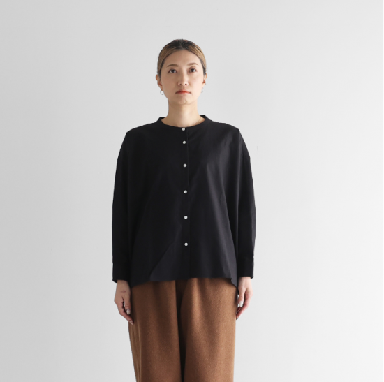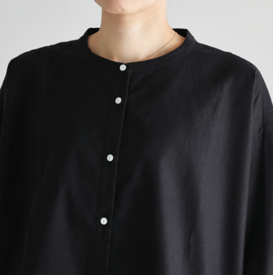 【11/22まで期間限定販売】HUIS./遠州織物オーガニックコットン起毛ビエラバンドカラーワイドブラウス(ブラック)U104