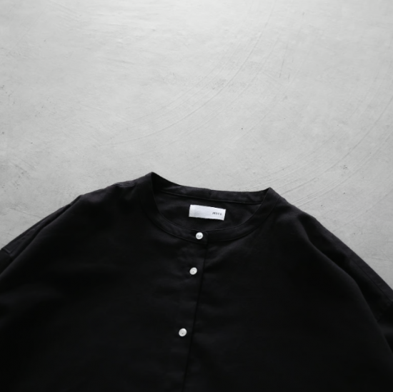 “日々の暮らしに馴染む、上質な日常着”をコンセプトに、世界的にも希少な旧式の「シャトル織機」で20〜30倍もの時間をかけて生み出す最高品質の「遠州織物」を使用したシンプルな衣服を展開しているHUIS.(ハウス)が作るシャツブラウス。