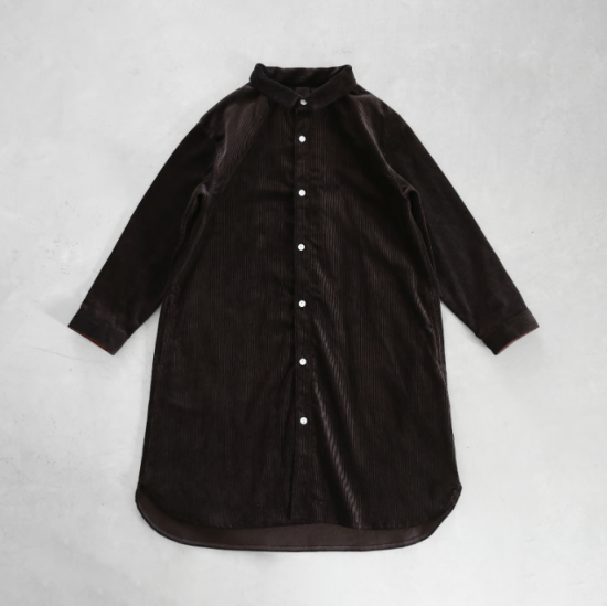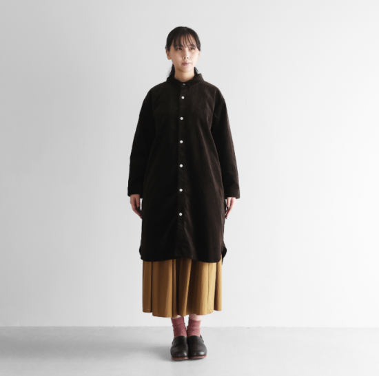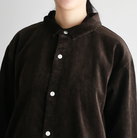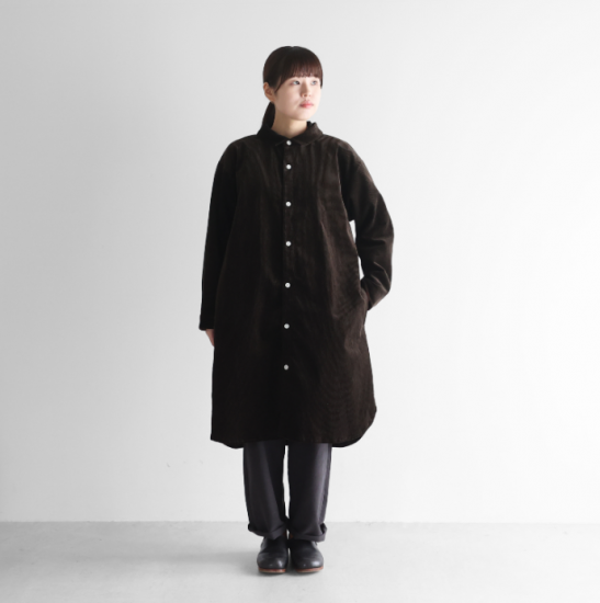 【11/22まで期間限定販売】HUIS./綿麻コーデュロイロングシャツ(細畝・カーキブラウン)【ユニセックス】012