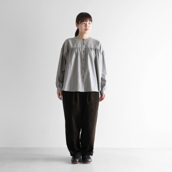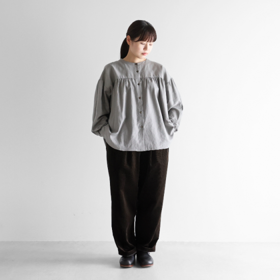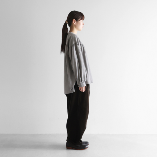 素材はヨコ糸に綿麻の混紡糸を使用した、希少なコットンリネンのコーデュロイで、シャリ感のある独特な素材感を楽しんでいただける生地です。