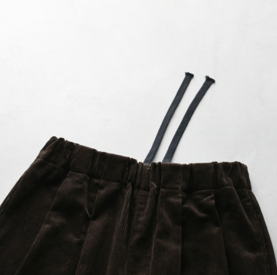 【11/22まで期間限定販売】HUIS./遠州織物綿麻コーデュロイワイドパンツ(細畝・カーキブラウン)【ユニセックス】504