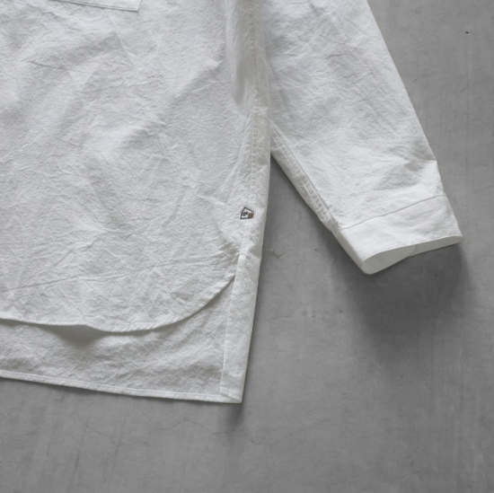 【11/22まで期間限定販売】HUIS./遠州織物コードレーンバンドカラーオーバーシャツ(白)【ユニセックス】015