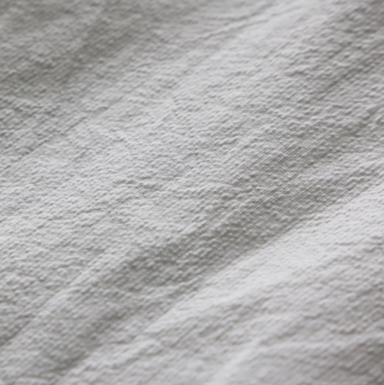 洗濯機でのお洗濯の際、ネットに入れて手洗いモードでお洗濯し軽く脱水をかけます。手のひらでシワを伸ばして干すことで元々の凹凸感が残り、ノーアイロンのまま自然な風合いを楽しんでいただけます。