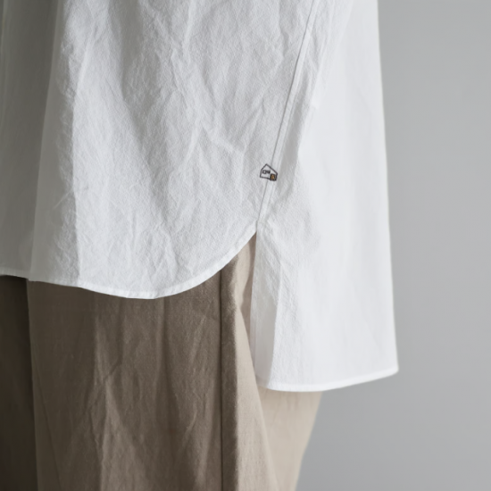 “日々の暮らしに馴染む、上質な日常着”をコンセプトに、世界的にも希少な旧式の「シャトル織機」で20〜30倍もの時間をかけて生み出す最高品質の「遠州織物」を使用したシンプルな衣服を展開しているHUIS.(ハウス)が作るユニセックスのシャツ。